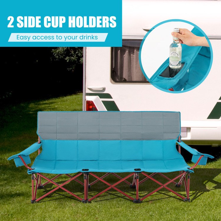 3 Person Folding Camping Chair with 2 Cup Holders Cotton Padding & Storage Bag