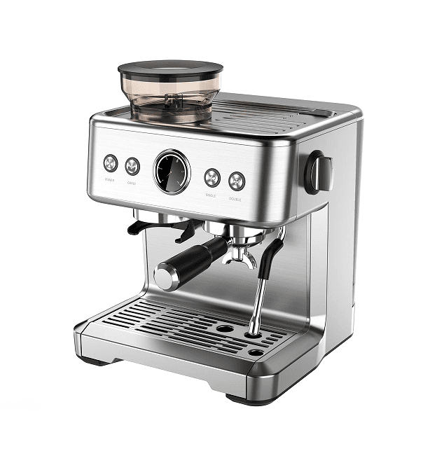 SKU: PSCM7060 coffee grinding machine. 20Bar extraction cappuccino / American Italian espresso, 1 cup / 2 cups mechanical button + instrument number, 2300W, steam type, powder hammer 58mm, 30 level grinding setting