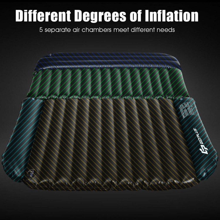 3.Practical 5 Compartments: This car air mattress can turn the back of your car into a comfortable bed and it has 5 separate airbags with independent air inlets. You can fully inflate the mattress for several people to use or partially inflate for single person. This comfortable air mattress helps you relax your body and enjoy better sleep on the go.