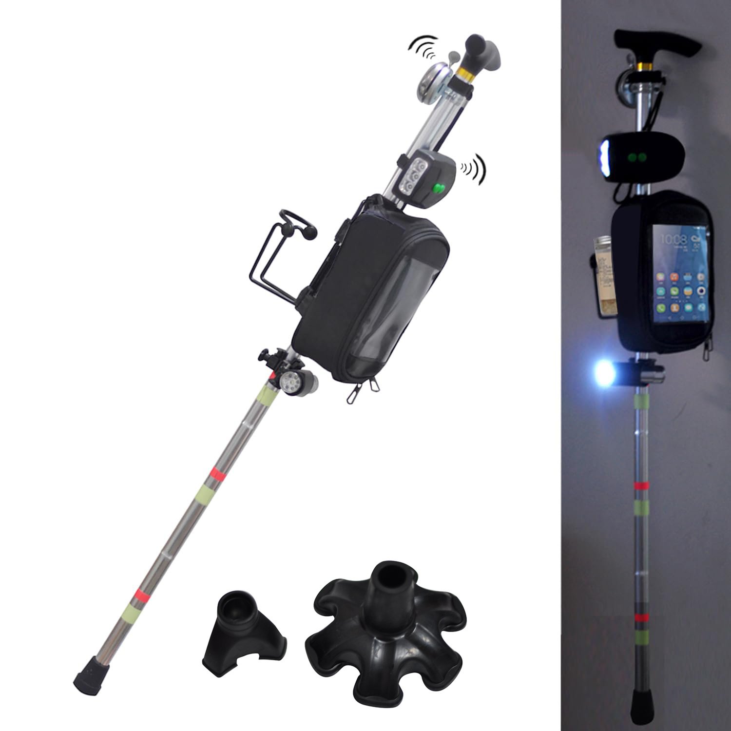 ★★★The cane is equipped with a bell, which can remind others to pay attention when crossing roads, sidewalks, or climbing mountains. In addition, there is electronic bell on the main light also, which are very practical.