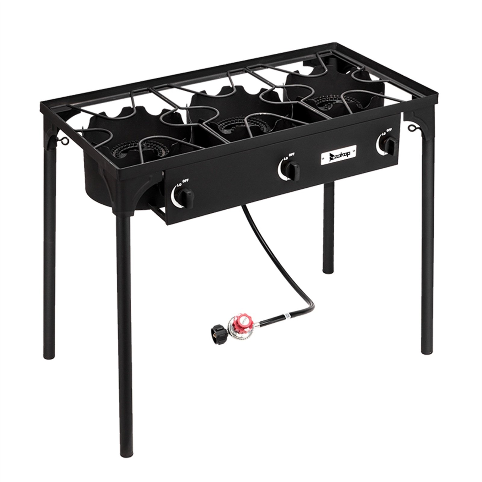 Home > Outdoor Camp Stove High Pressure Propane Gas Cooker Portable Cast Iron Patio Cooking Burner (Three Burner 225000-BTU)