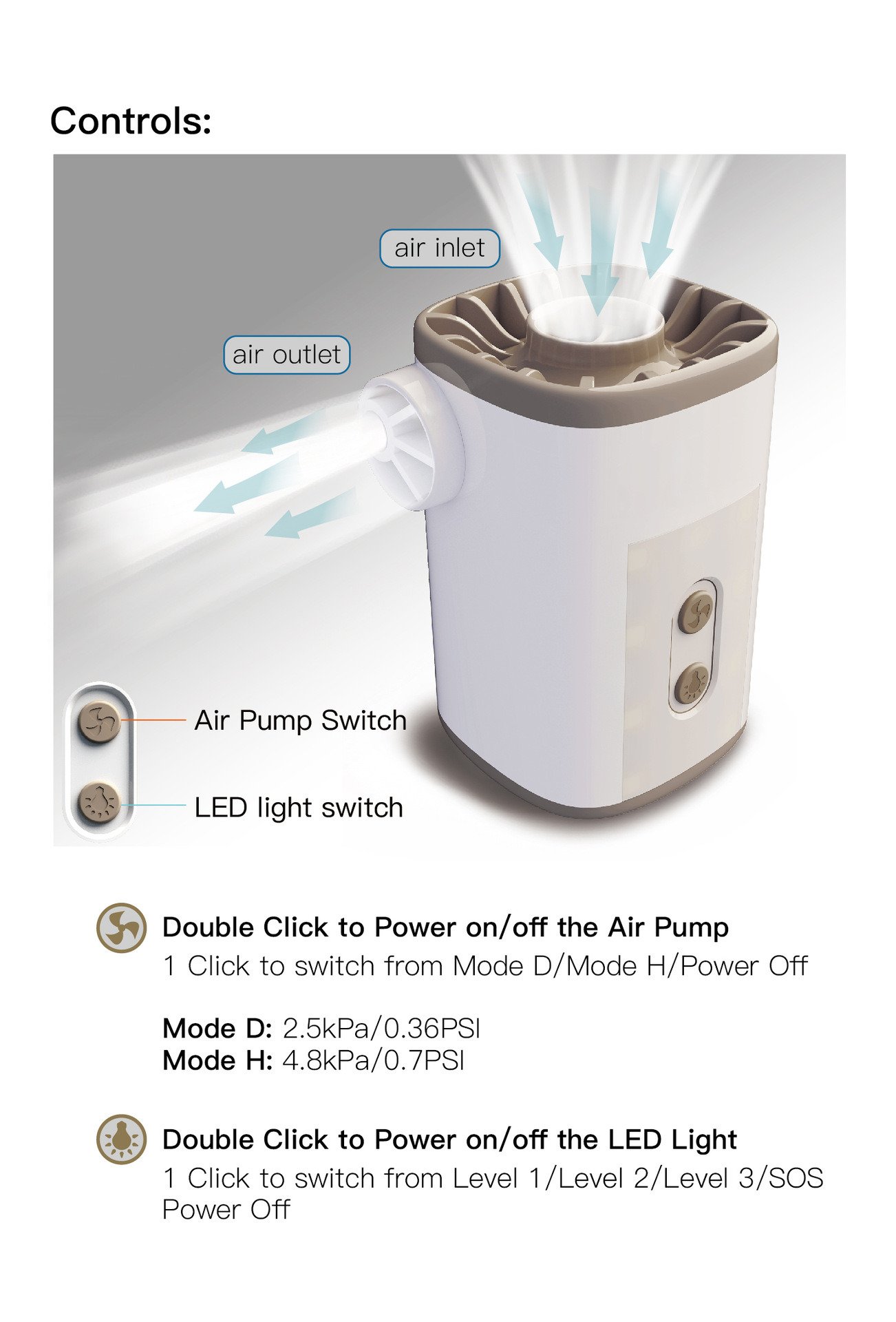 Inflation: low-speed gear / high-speed gear Pumping: low-speed gear / high-speed gear