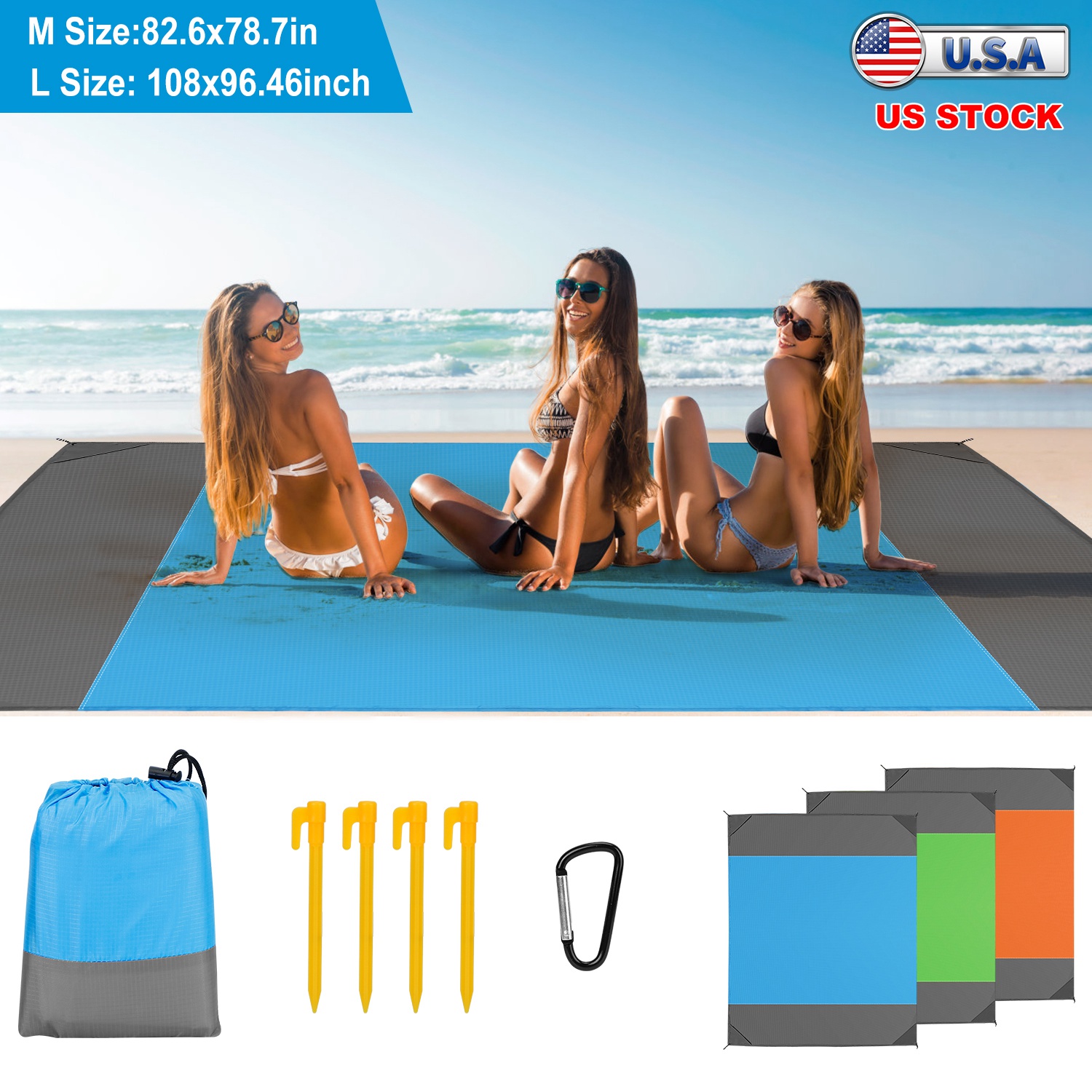 82.6x78.7in Sand Proof Picnic Blanket Water Resistant Foldable Camping Beach Mat w/ 4 Anchors 1 Carry Bag For 2-3 People