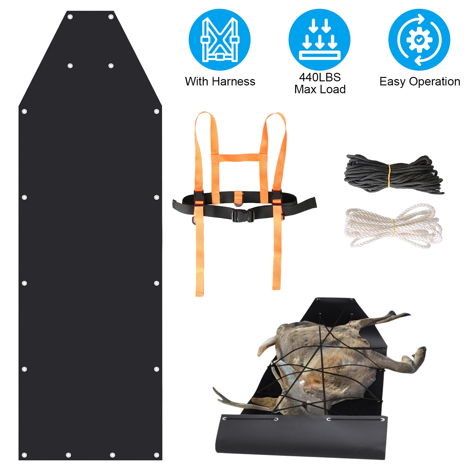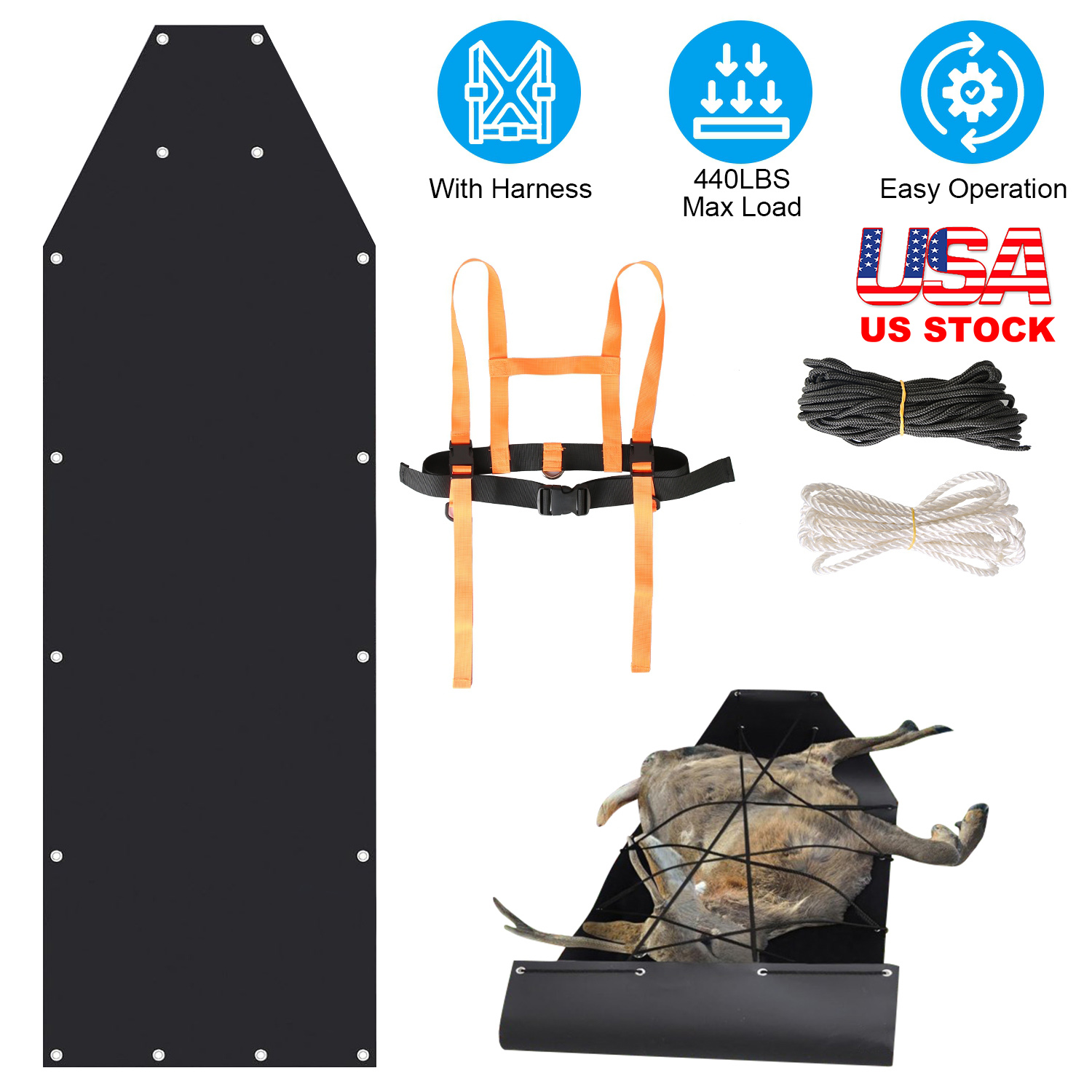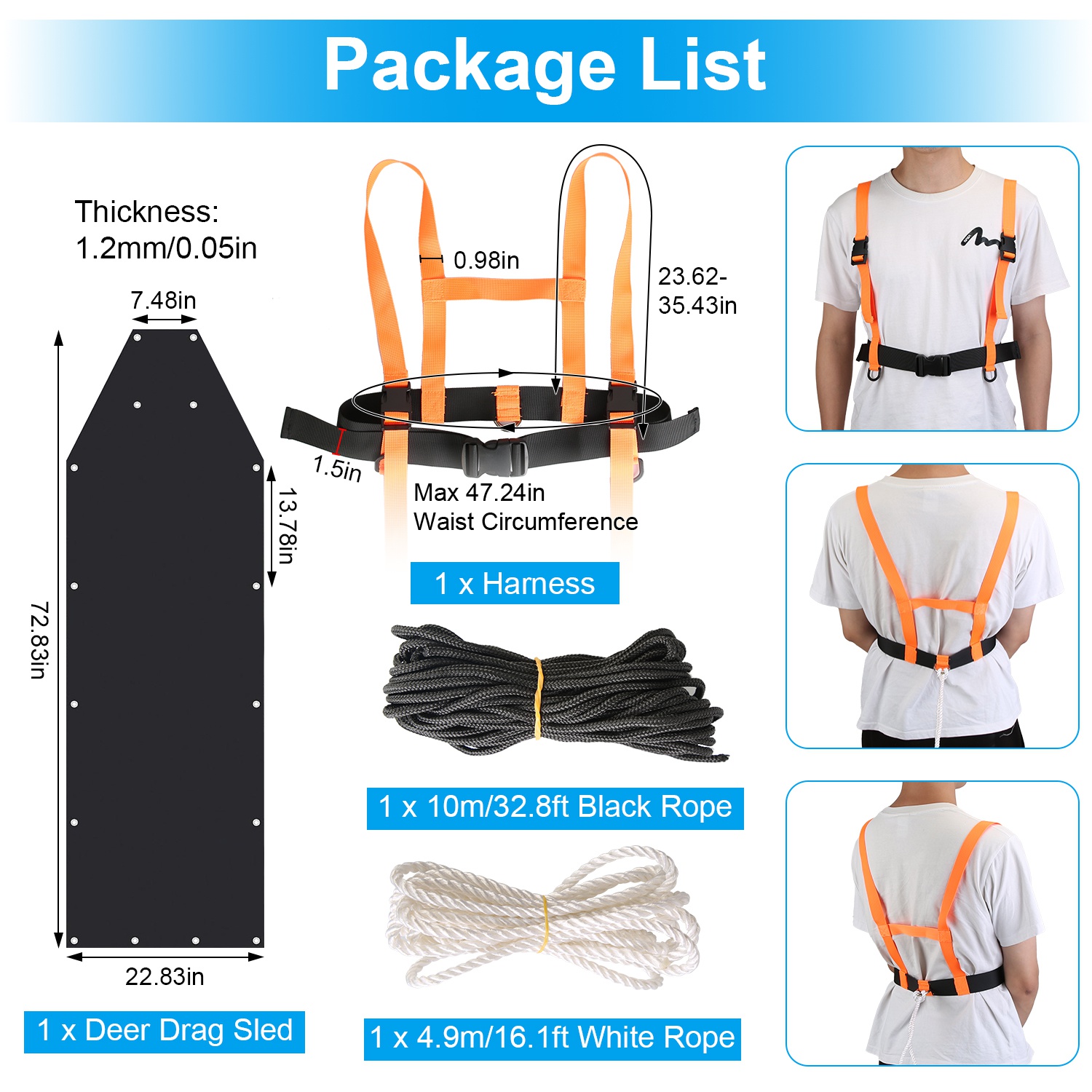 Home > Deer Drag Sled with Dragging Harness Deer Cart Game Hauler Snow Sledding Pad Hunting Gear Supplies with 32.8FT Black Rope 16.1FT White Rope for Huntin